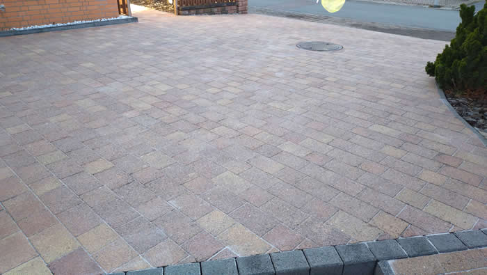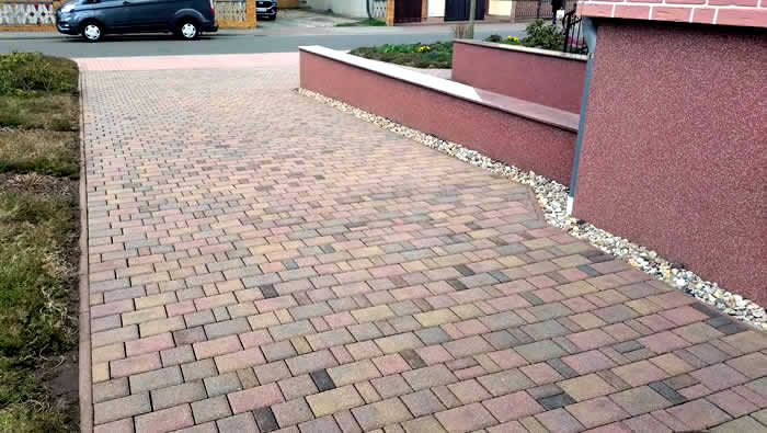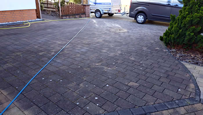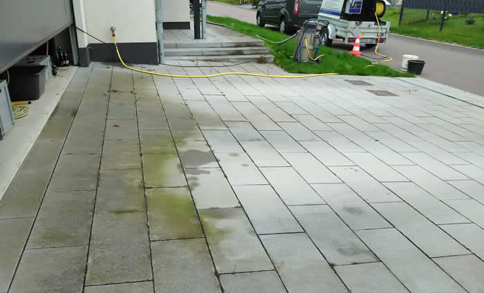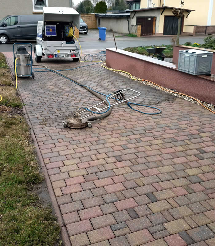 Pflasterreinigung der Hofeinfahrt und der Außenparkplätze Familie M. in Pouch