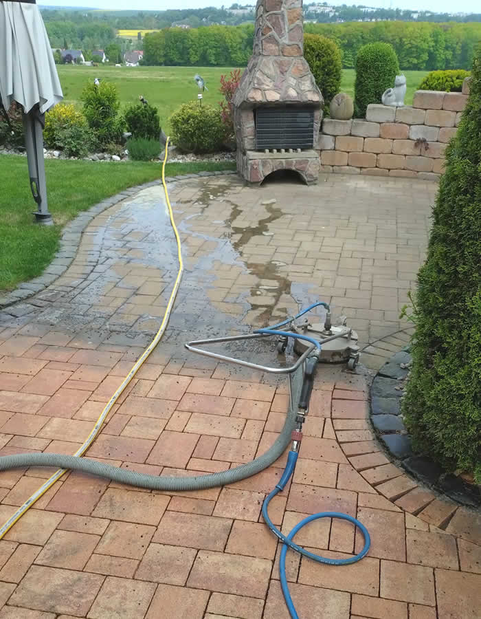 Pflasterreinigung von Terrasse und Gartenwegen bei Familie K. in Thonhausen